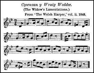 It is probably not necessary to reprint here the well-known Welsh melodies which are to be found in the usual Welsh collections, but a couple of airs from Parry's Welsh Harper will serve to give examples of two types of Welsh tunes.
