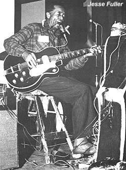 I made a bow like the Indians used to use and put some wax on the string: I put the bow in my mouth and pick the string and it sound like a jewels harp ... I don't know how the idea ever came into my head.He spent the first half century of his life as an itinerant worker, finding jobs in a broom factory, a barrel factory, in rock quarries, in circuses and on railroads. By the 1920s he had settled in California where he carved wooden snakes to sell on street corners, acted as an extra in Douglas Fairbanks' 1924 The Thief of Baghdad, and during World War II, worked as a welder in the shipyards. He had learned to 'flail gut-tar' at an early age, played a homemade guitar, and sung his own songs throughout his years of hoboing and so, well-settled in Oakland, California when the shipyards closed after the war, he decided to try to make a living playing music. It was at this time that he designed and built his foot-operated bass, the 'footdella' (a combination of the words foot and Killer Diller), an upright string bass with six piano strings hit with individual hammers attached to six pedals that he played with the big toe of his right foot. Because it was limited to only six bass notes, he occasionally played tunes without the footdella. The sock cymbal he played with his left foot was also his own construction (except for the topmost cymbal), as was his neck harness (which held harmonica, kazoo and a microphone plugged into the amplifier of his twelve-string guitar), and the stool he sat on to play. With his vast repertoire of blues, spirituals, rags, and pop tunes, the folk festival and nightclub scene of the 1960s folk music revival provided Fuller with enough work that he was able to live off his music. He recorded several record albums, played festivals throughout the US and Europe, and his San Francisco Bay Blues became a familiar folk standard. His is probably the only one-man band so fully recorded and the high-spirited, smooth, and well-integrated playing of his various instruments make his accomplishment well worth that attention and praise.4