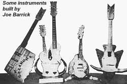 When he got out of the armed services, Joe settled in California and began playing in western bands, mostly on fiddle and mandolin. It was during this thirty year period, before moving back to Oklahoma 15 years ago, that he began utilising skills gained in his regular employment as a carpenter, designing and building his own instruments. One of his first used the skull of a cow as the body.