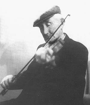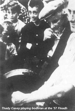 "Why sure, no one, Thady, I'm only making a bit of a noise," I said. "You weren't too bad at all, come up to the house and I'll straighten you!" Thady Casey was a well-known figure in the music of the area, and, although an accomplished fiddle player, he is best remembered as a great dancer and the foremost local dance teacher. Junior took up the invitation and visited Thady's house, where he received valuable instruction on many of the technical aspects of fiddle playing: how to hold the bow, tuning etc. On the meantime, however, he had fallen under the spell of Thady's cousin, John 'Scully' Casey.