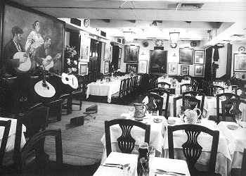 Now for the first time the institution of 'Houses of Fado' appeared, which over the following decades would develop into a tourist attraction complex. The concept of 'typicality' would lead to stereotype formats. Instructions were published mandating suitable décor elements for a Casa do Fado, and these environments in truth became quite artificially 'traditional'. A standard performance schedule evolved in which just three of four songs would be performed by one singer under a imposed venerating silence, followed by a pause during which the guests could continue to be served, eat, drink, talk and make a noise, until the next musical sequence. Female singers would wear a black shawl (originally a multi-coloured one, but black after the establishment of Amália Rodrigues as the ultimate goddess or queen of fado). The instrumentalists would play usually one, or perhaps two Portuguese guitars, accompanied by a steel-string guitar of Spanish form played fingerstyle, usually with a thumb-pick and sometimes finger-picks, and from the late 1940s perhaps a four-stringed acoustic bass guitar. No microphones are ever used in such performance situations, which is, to this writer one of the most endearing aspects of the fado tradition.