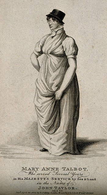 Ménie Muriel Dowie edited a book titled Women Adventurers (1893). This book reprinted the autobiographies of four women who served in the armed forces masquerading as men. The women concerned are Madame Velazquez, Hannah Snell, Mrs Christian Davies and Mary Anne Talbot. In her introduction to the book Dowie says of Talbot that; 'The nobleman's daughter, Mary Anne Talbot, has a touch of the mysterious about her history, and it would be very hard to measure the proportion of fact and fiction which made up her career'.1 On the other hand Suzanne J Stark, in her book Female Tars (1996) has no problem in 'measuring' between fact and fiction when she states that 'Talbot was a well known character in London in the early years of the nineteenth century, but her claim to have served in the navy and in French and American ships was fabricated.' She goes on to say that; 'The most surprising thing about the Life and Surprising Adventures of Mary Anne Talbot is that it has for so long been accepted as a historical account.