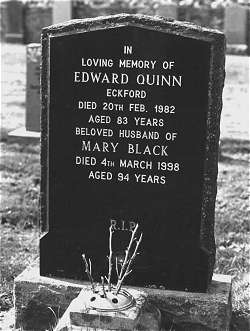 When he was 65 years old Eddie retired from work and settled with his wife in a Buccleuch Estates retirement cottage in the village of Eckford, just off the A698, between Kelso and Jedburgh. According to a neighbour, Doug Gotterson, Eddie would still play the accordion at home, and could play 'all night long without repeating a tune'. Gradually, though, his musical days came to an end and Eddie passed away on 20th February,1982. Had he made more records he would, I am sure, have become as famous as William Hannah or even Jimmy Shand for that matter. But that was not to be. At least now there is a face and a story to go with the name and, of course, there will always be that wonderful handful of unique recordings made by Eddie Quinn, the 'Button accordion champion of the Borders' .