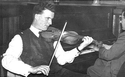 When I started playing in Wood Street, the pianist there was a chap called Adolphus (Addie) Brophy. He was brilliant at playing the right hand, you know, playing the melodies. Wood street was a hall. The Gaelic League had regular weekly céilís there. Addie Brophy also played there, but when John Ludden came back from the army, he was a great pianist as well and he played there every week. Adolphus got paid every week, but half of the night, he just sat out, because these lads were dead keen to play. He enjoyed it, but he was happy enough for someone else to sit in and play. So there was Ned Ludden and my brother and myself. And then Eamonn came back. He was in the army in India. But when he was demobbed, he came back. So there was Eamonn and Pearse and myself. Three fiddles and Ned Ludden on the piano, mostly. Kit Hodge at that time had got married and she'd gone back to Ireland for a bit. She was down in Waterford.