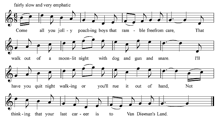 In only three years between 1827 and 1830 more than 8,500 men and boys were convicted as poachers and a very high proportion of them transported. If you got transportation, even if only for what was called a light term of seven years, you did not as a rule see your home again, for no return passages were paid. And very many well-known songs of this time were about Botany Bay and Van Diemen's Land: