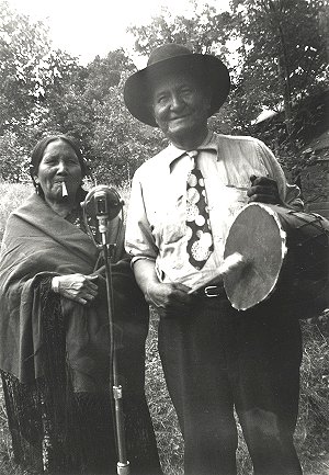And this now brings me to the many other non-English speaking people who settled in America, some of whom actually settled there a long time ago.  I am, of course, speaking about the Native American people who feature in a few recordings here.  There is a flute-song and a war dance from the Ho-Chunk people and a fascinating church hymn sung by representatives of the Oneida people.  This latter piece has a tune similar to Amazing Grace and is quite moving in its sincerity.  And there is also a selection of tunes played on the fiddle by Joe Cloud, of the Chippewa people.  Some years ago, on one of my visits to New York's National Museum of the American Indian, I heard recordings of native fiddle music which were being played in the background as part of an exhibition.  It all sounded very "ethnic", that is until I recognized one tune as being a version of Turkey in the Straw.  I think that it came as a shock, as it was not the sort of thing that I had expected to hear.  But now I can hear Joe Cloud doing the same sort of thing.  He was apparently taught to play the fiddle by his father and alongside a beautiful Squaw Dance we can also hear him playing Red River Jig and White River Two Step, this latter tune sounding at times like Fiddlin' Arthur Smith's recording of Florida Blues.