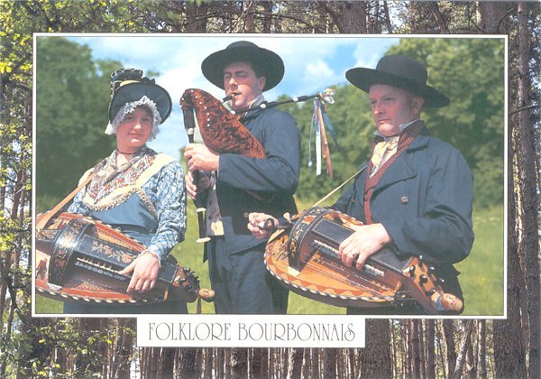 Folklore Bourbonnais - vielles et cornemuses; commercial postcard, recent.From the Bill Dean-Myatt Collection.