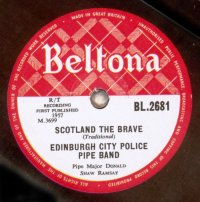 Apart from a solitary visit to Glasgow by the Berliner Company in 1899 and one by the Homophon Company, also to Glasgow, in 1909, it would be many years before any record company ventured across the Border. Although a large number of record brands existed at this period the repertoire, as far as Scots music was concerned, varied very little from company to company. Some cover versions of Harry Lauder hits, Burns' ballads by baritones and sopranos and perhaps a few bagpipe records were the general extent of their Scottishness. In the case of recordings of solo bagpipers and bagpipe bands, the majority of these were provided by various battalions of the Scots Guards who were always conveniently available.