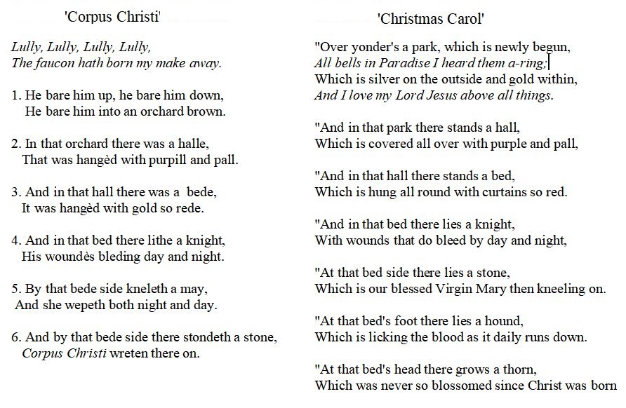 16. Ibid, p. 148. The carol with the title Corpus Christi was given as a means of reference by Frank Sidgwick and appeared with that title in Journal of the Folk-Song Society 4.1 (No. 14, June 1910), p.53.